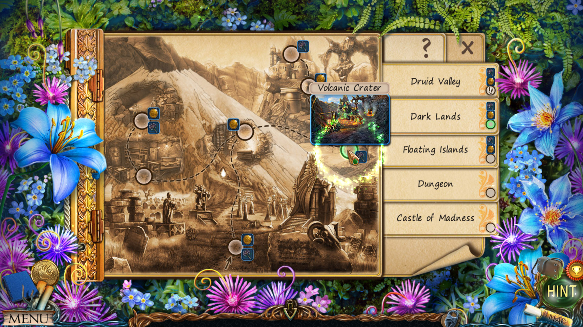《失落之地:黄金诅咒》是一款充满冒险的隐藏物品解谜游戏,谜题和小游戏散落在奇幻世界的广阔空间中——从火山山谷到德鲁伊森林,从幽深洞穴到漂浮岛屿。