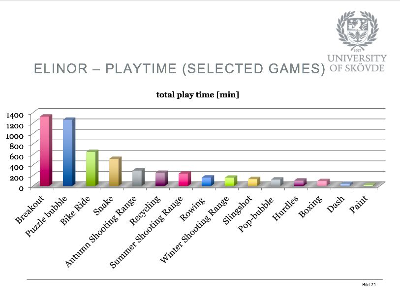 但是在这款设备的实验中,他们已经非常着迷这些游戏的玩耍和使用。我们可以看到这里面他们所玩每一个游戏的时间段。还有一些是画画游戏,比如说有的某块就是完全根据艺术画画的环节,可以根据你自己的习惯,根据你自己的肢体动作,来进行绘画,他们都非常喜欢这些游戏。大家可以看一下在整个游戏和医疗也可以完全整合到一起。